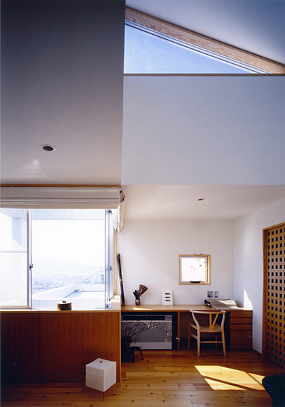 敷地は鴻巣山南斜面。濃い緑を背に南西に広がる市街地と油山の山並みを一望する自然と眺望に恵まれた住宅地である。博多湾からの海風は一旦山の緑に浄化され、季節を通して爽やかな空気を運ぶ。敷地より眺める山の端、空の色・・は朝、夕に美しく表情を変える。